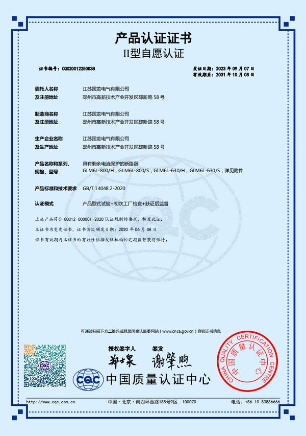 GLM6L-400HSJ志愿認證證書