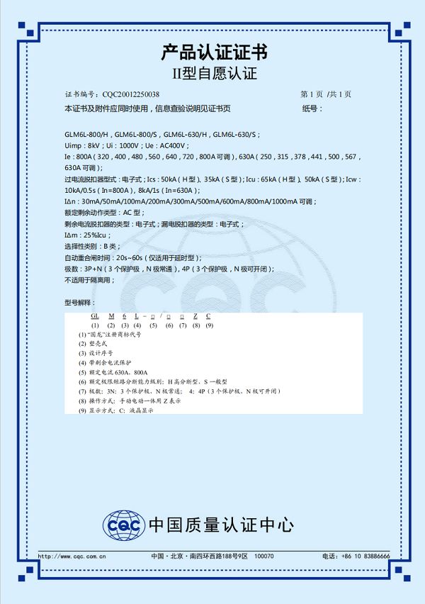 GLM6L-630-800志愿認證證書